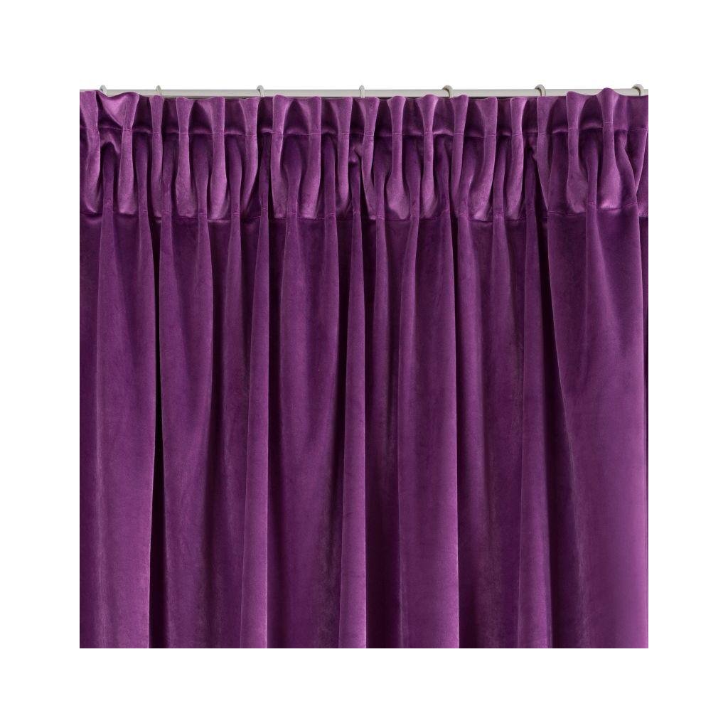 Kolekce závěsů VILLA byla navržena z měkké sametové tkaniny, která díky své hustotě a tloušťce skryje vaše okna během dne před slunečními paprsky a večeřemi před zvědavýma očima. Vznešená fialová barva změní váš interiér a dodá mu zvláštní charakter. Ozdobná páska použitá v zácloně má tunel, díky kterému je možné připevňovat dekorace na záclonovou tyč a tradičně i se žabkami. Díky pásce je tkanina velmi pěkná a po zavěšení vytváří pravidelné vlny. Závěs dokonale ladí s klasickým i moderním interiérem. Těžká, měkká a dobře překrývající tkanina dodává interiéru jemnost a styl.