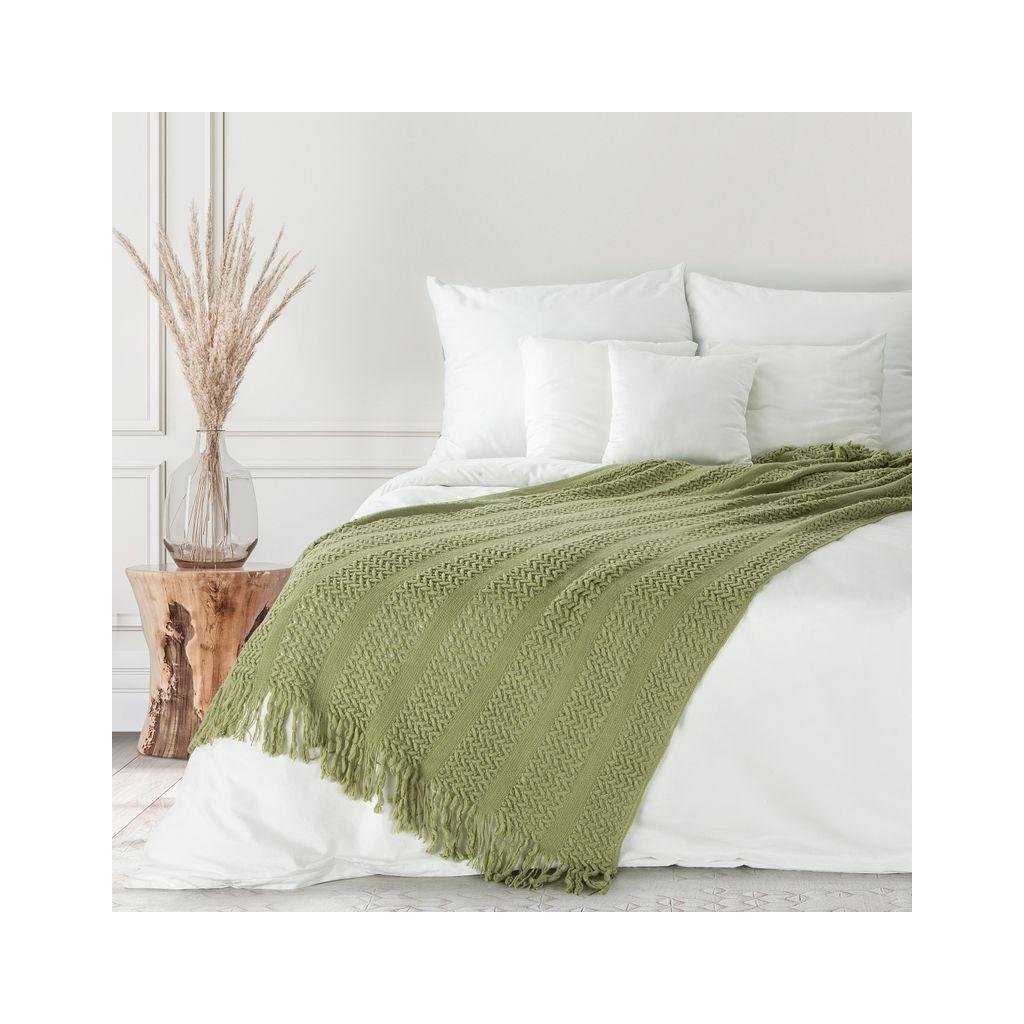 Měkká a na dotek příjemná světle zelená deka AKRYL1 je dokonalou přikrývkou pro chladnější večery. Deku s drobným ažurovým vzorem vytvářejícím vzor rybí kosti a se sametovým nádechem využijete jako teplou přikrývku nebo přehoz. Oboustranně zakončená deka s jemnými třásněmi působí velmi stylově. Deka je antialergická díky akrylovým vláknům, ze kterých je vyrobena, rychleschnoucí lehká a vzdušná. Skvěle hodí do módních moderních ložnic, může být ozdobou v obývacím pokoji, své místo si najde i na terase či balkoně.