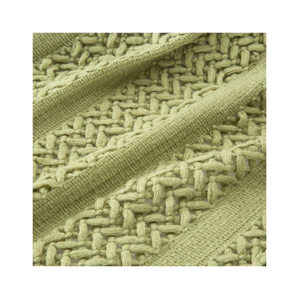 Hebká a na dotek příjemná světle zelená akrylová deka AKRYL1 s jemným ažurovým vzorem a třásněmi. Šířka: 130 cm, délka: 170 cm. Gramáž: 215 g/m2. Materiál: 100% akryl.