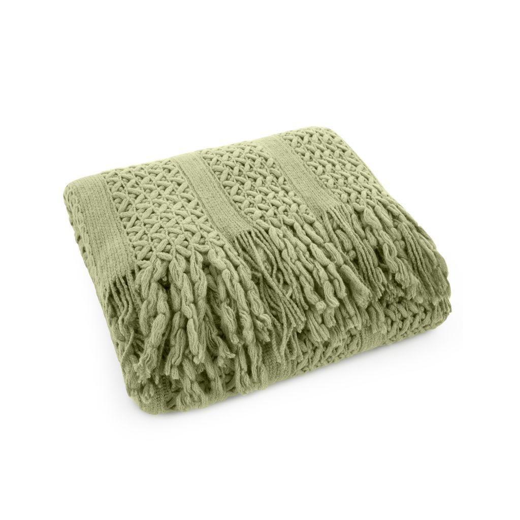 Zelená deka AKRYL1 s ažurovým vzorem a třásněmi 130x170 cm