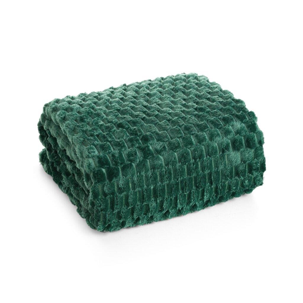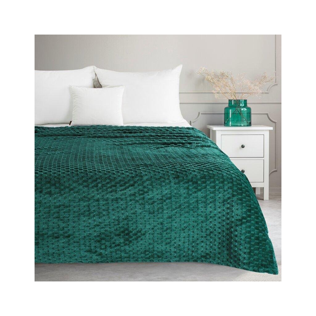 Zelená huňatá deka CINDY6 s 3D vzorem 200x220 cm